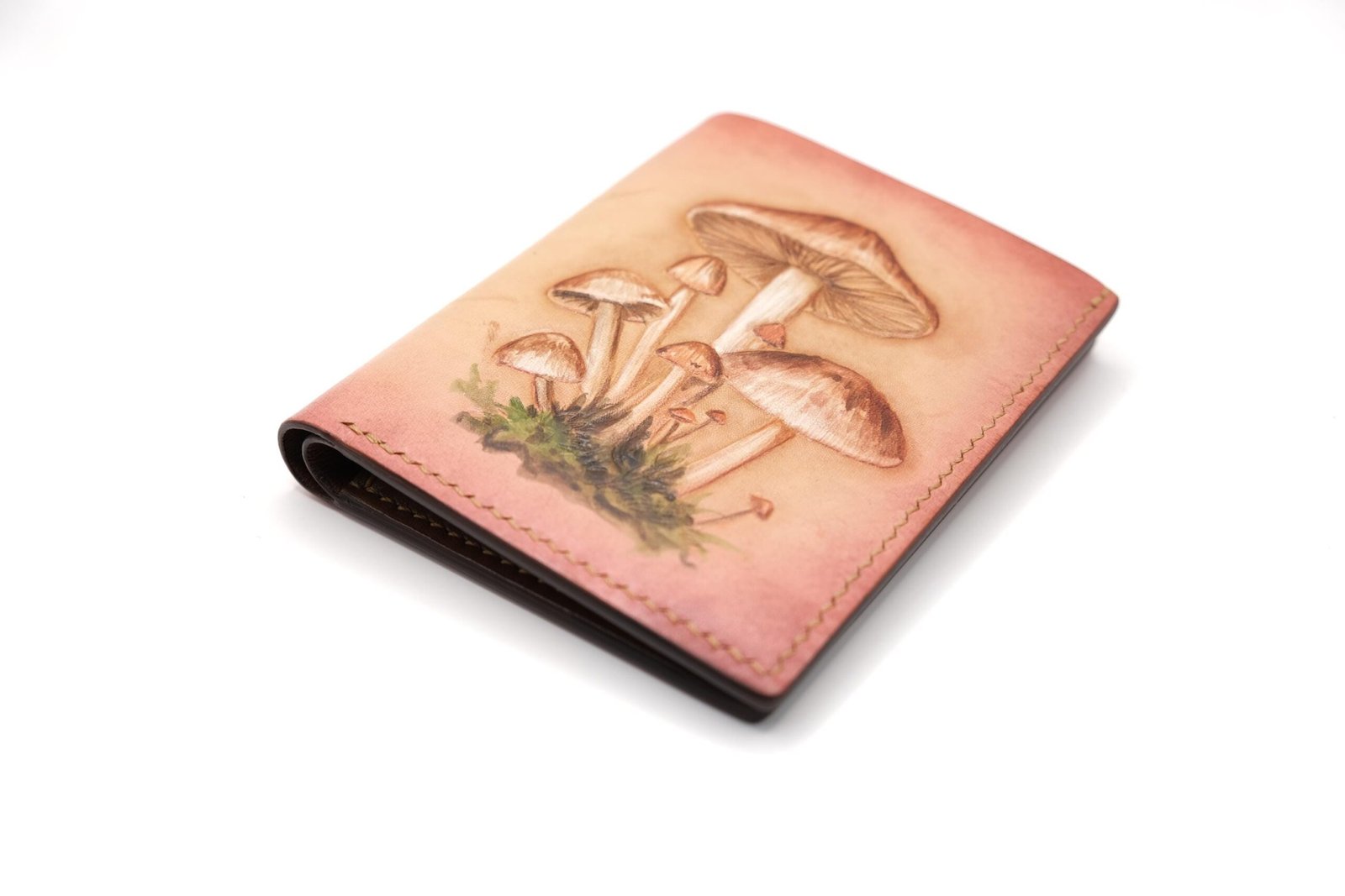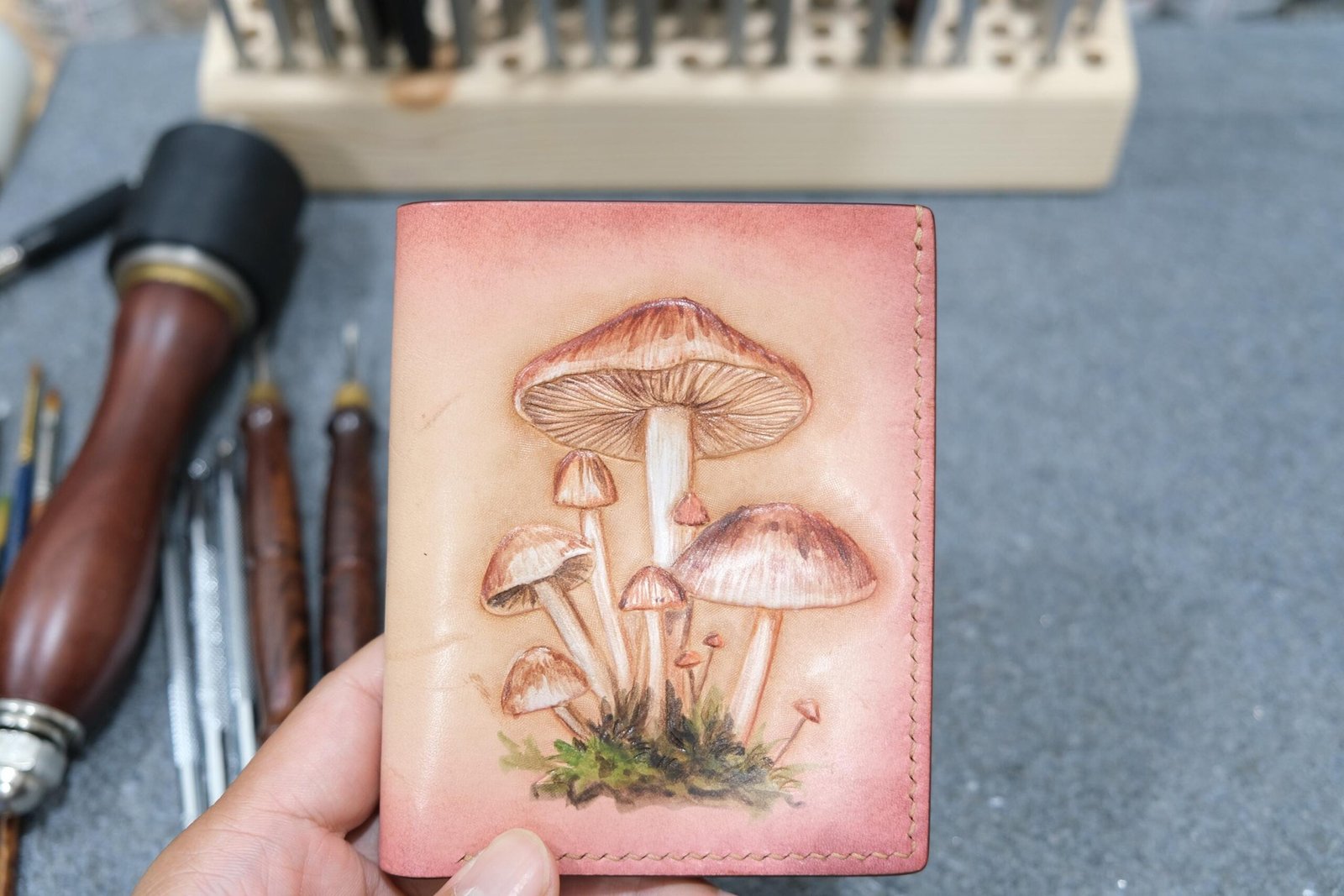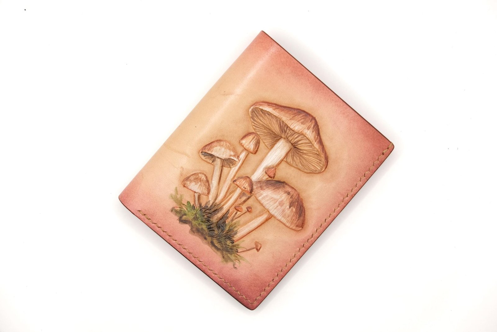 Alohaleather Hand-Carved Leather Wallet – Mushroom Forest Design