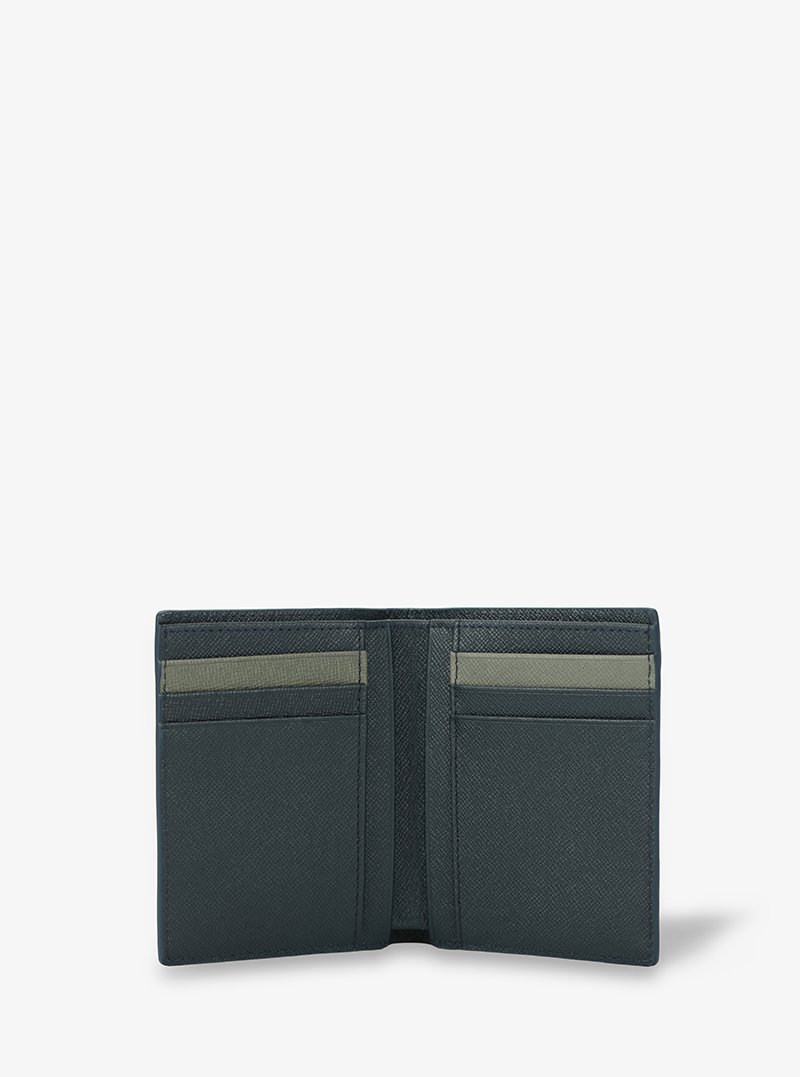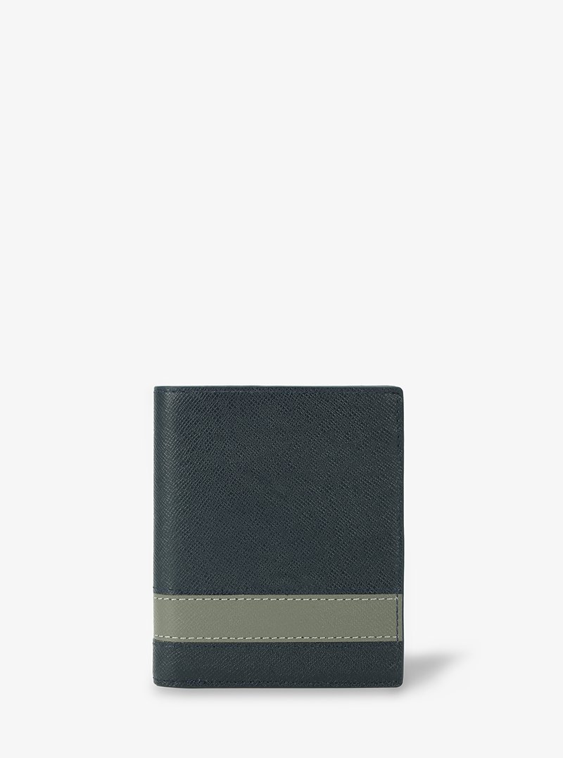 Elevate your style and appreciate the special mark of the stripe with the Bifold Stand Wallet in Dark Green AlohaLeather Taiga with Stripe—an accessory that embodies both form and function, with a touch of timeless elegance.