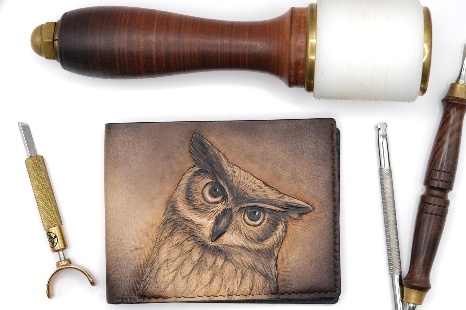 Alohaleather Hand-Carved & Painted Leather Wallet – Black Owl Design